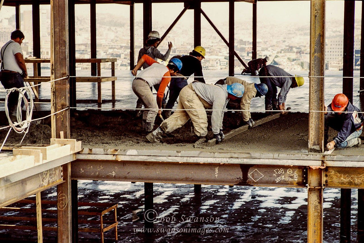 Concrete Finishers working on exterior structural slab on 3rd St., San Francisco.