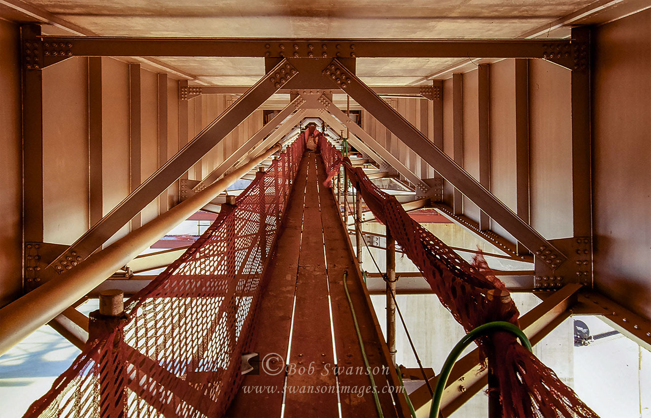 Catwalk below the Benicia bridge (highway 680) for the seismic retrofit. For The American Society of Civil Engineers.