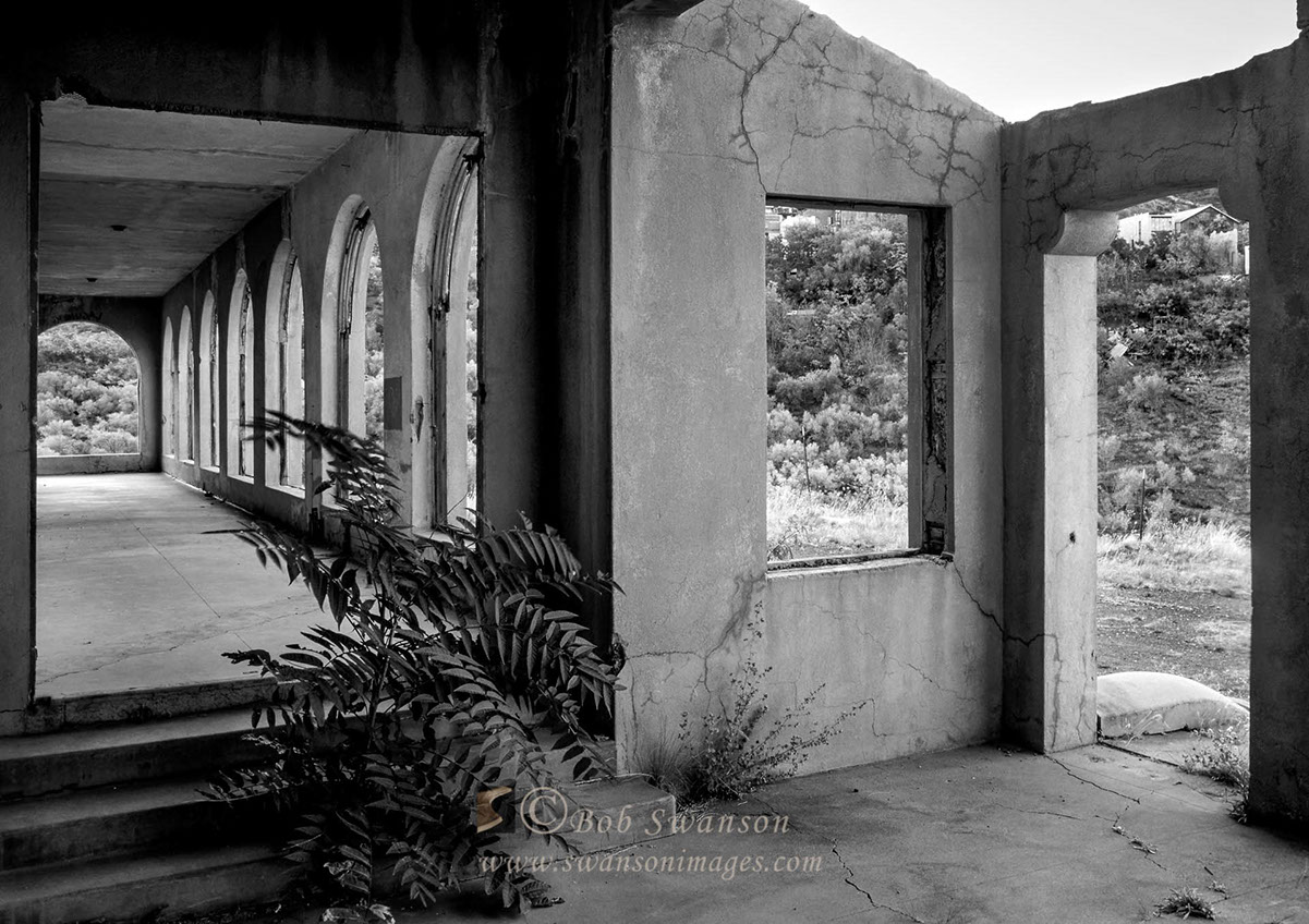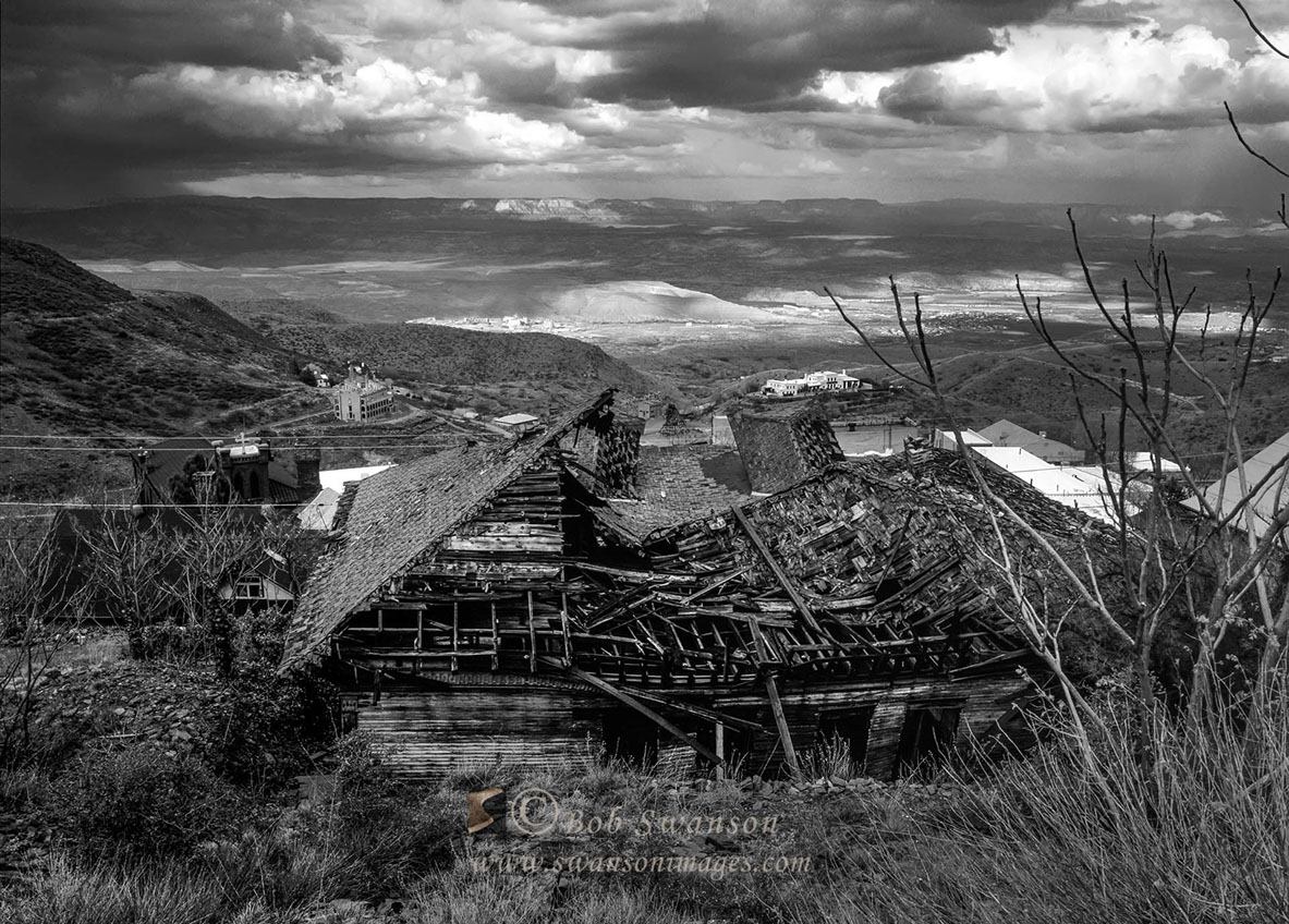 The ruins of the Daisy Hotel roof overlooking the Verde Valley.