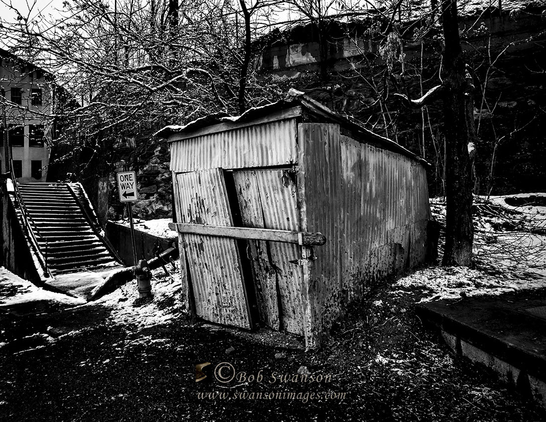The shed in B&W.