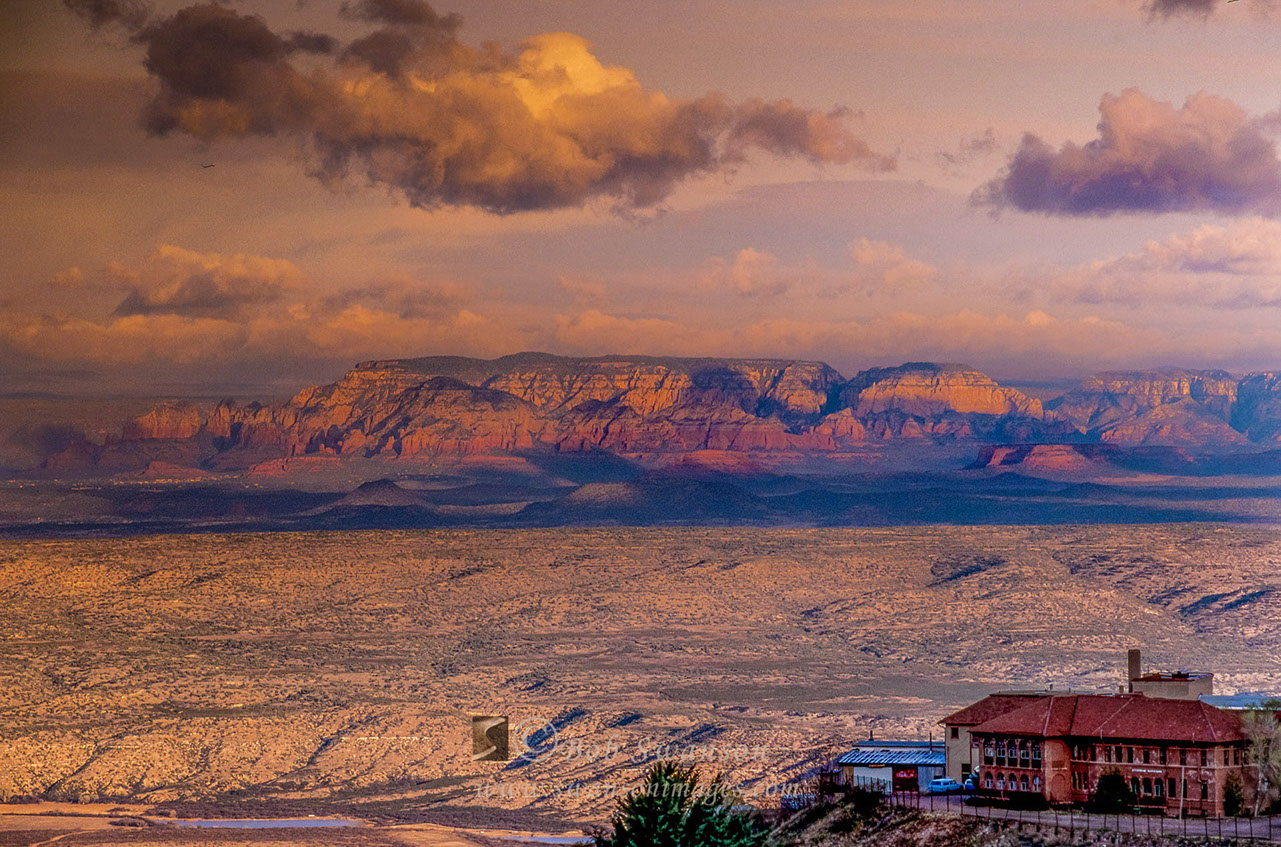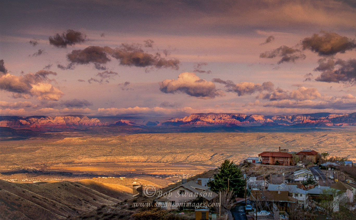 Deeper sunset on the Verde Valley, Kaibab Ridge and Jerome High School the headquarters of the Jerome Instrument Company.