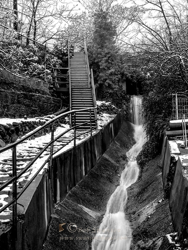 Snow stairs and runoff diversion.