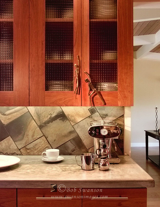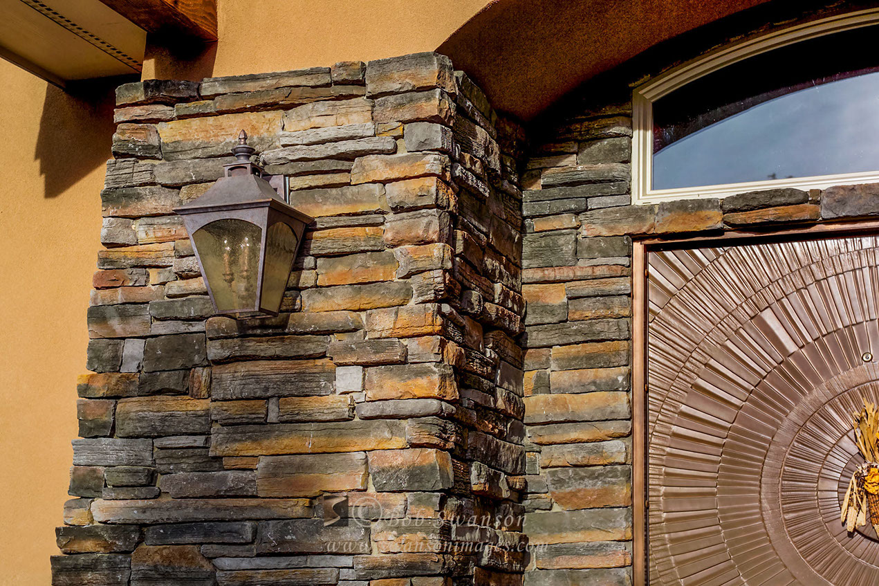 Detail of Wilder residence entry and Mt. Shasta. Ron Stevens, Architect.