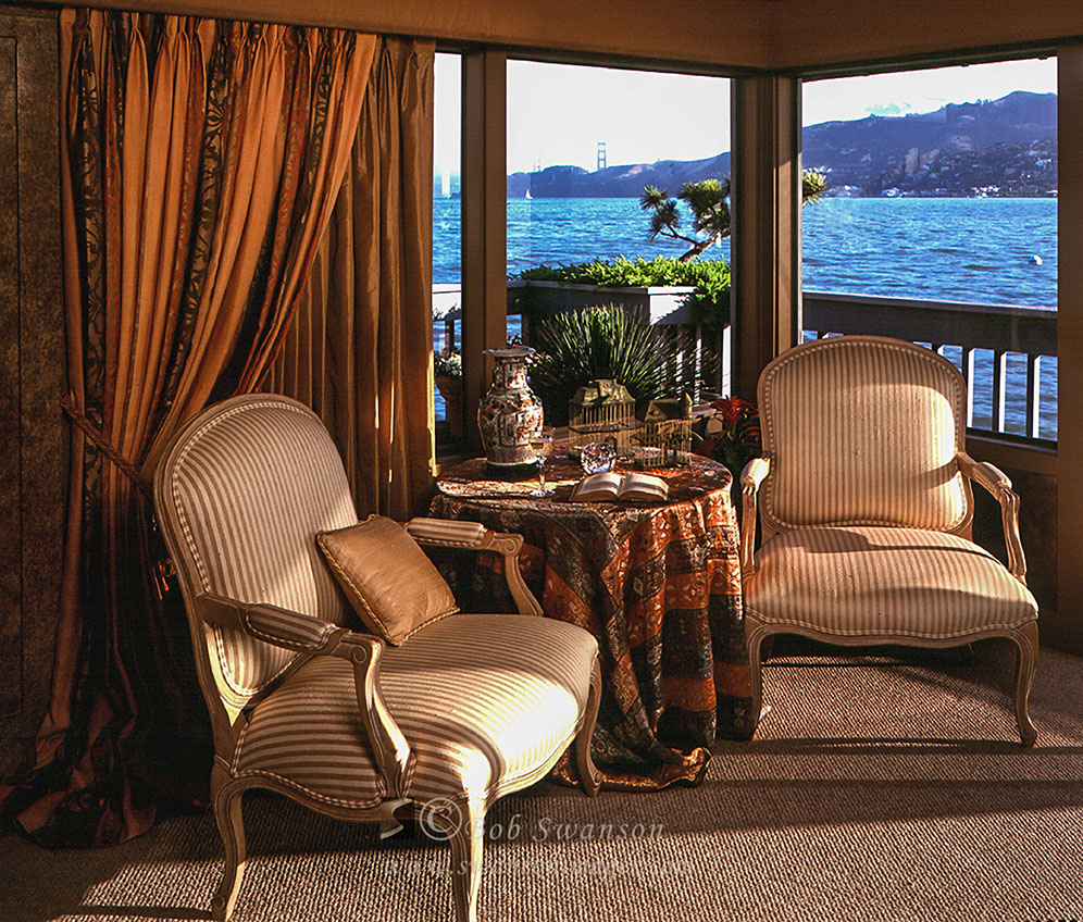 Tiburon living room on San Francisco Bay in Marin County, California