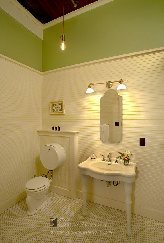 Dual sinks. McCloud Mercantile Mall, Bed and breakfast period rooms and exteriors.