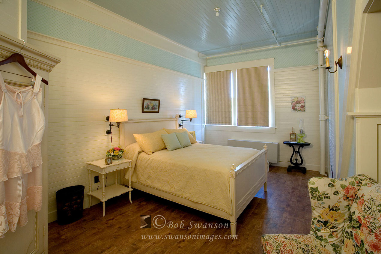 Bedroom. McCloud Mercantile Mall, Bed and breakfast period rooms and exteriors.