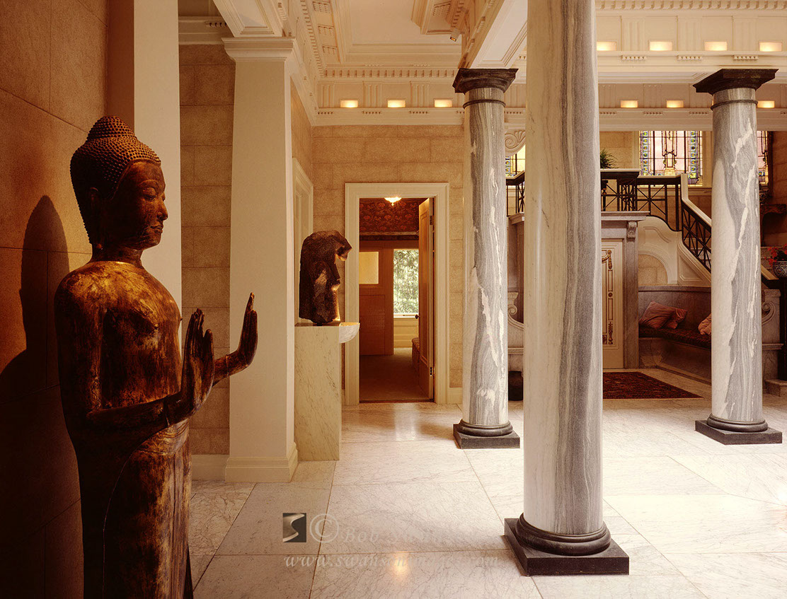 Buddha and the Marble foyer of the historic restored replica of La Petite Trianon (Versailles) in San Francisco, California