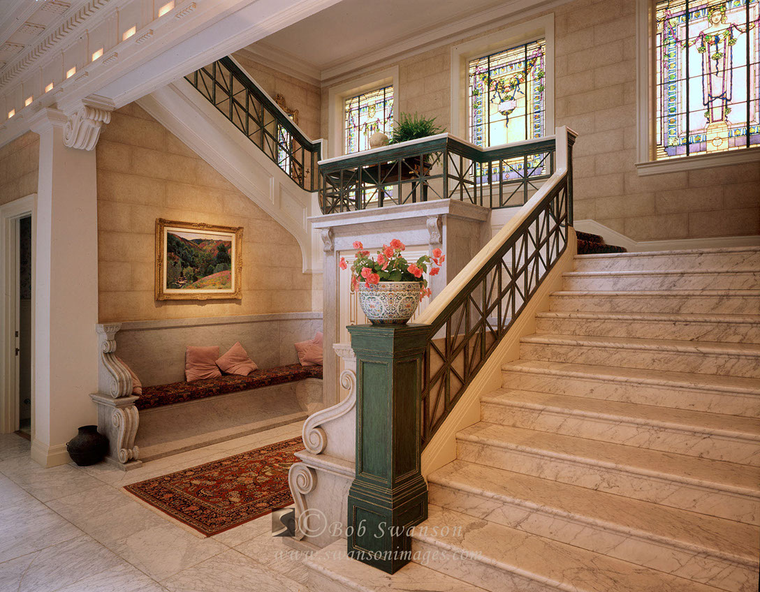 2,000 year old Chinese vase, nook and stairway in the historic restored replica of La Petite Trianon (Versailles) in San Francisco, California